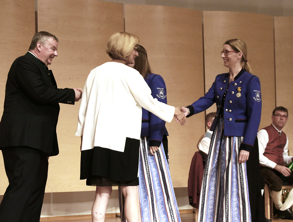 meinte NÖs Landeshauptfrau mit einem Schmunzeln, als eine rein weibliche Abordnung des Vereins und der Gemeinde zu ihr auf die Bühne marschierte. Kapellmeisterin Viktoria Pfaffelmaier, Obfrau Gabriele Machacek und Gf. Gemeinderätin Claudia Ruisz in Vertetung von Bürgermeister Roland Braimeier freuten sich über das herzliche Handshake der Landeshauptfrau gemeinsam mit Dir. Peter Höckner, dem Landesobmann des NÖ Blasmusikverbandes, den sie gleich als „Quotenmann“ auf dem gemeinsamen Foto bezeichnete. Ein unterhaltsamer Nachmittag zu dem uns auch Gemeinderat Werner Holy als rasender Reporter der Gemeinde Markt Piesting begleitete.