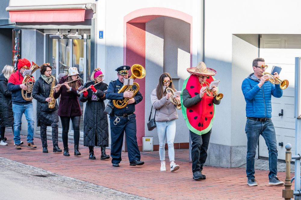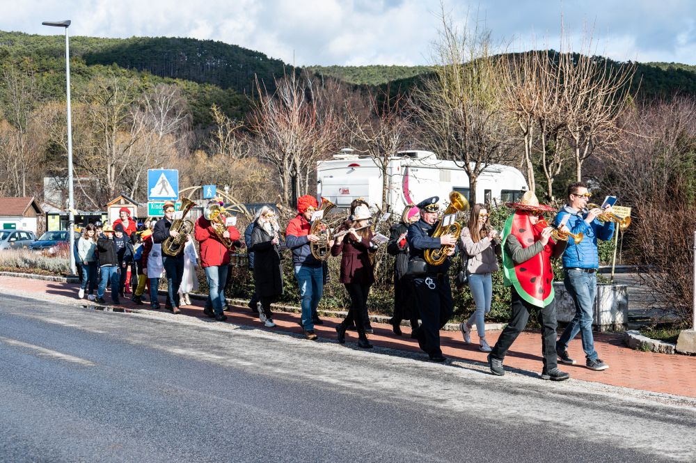 Denn selbstverständlich haben wir uns dem Motto „Früchte“ der VS-Lehrerinnen angeschlossen, als wir die Kinder der 3. und 4. Klassen am Faschingsdienstag bei ihrer Runde durch den Ort musikalisch begleiteten.