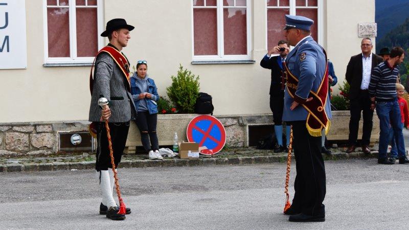 Bezirksmarschmusikwertung in Scheuchenstein am 16. Juli 2016. Insgesamt waren 10 Kapellen zum großen Bezirksmusikfest im Rahmen des Sommerfestes der Trachtenkapelle Gauermannheimat Miesenbach angereist. Acht davon stellten sich auch der Marschmusikbewertung durch drei kritische Bewerter, allesamt erfahrene Bezirkskapellmeister und Funktionäre befreundeter Arbeitsgemeinschaften. Mit dem Marsch „Dir zum Gruß“ und als einzige Kapelle in der Stufe D (die Schwierigkeitsgrade reichen von A – leicht bis E – Kunststufe) bzw. auch als einzige Kapelle überhaupt an diesem Nachmittag (!) erreichte der Musikverein Markt Piesting mit seinen 42 Musikerinnen und Musikern ausreichend Punkte, um sich über eine Auszeichnung freuen zu können!