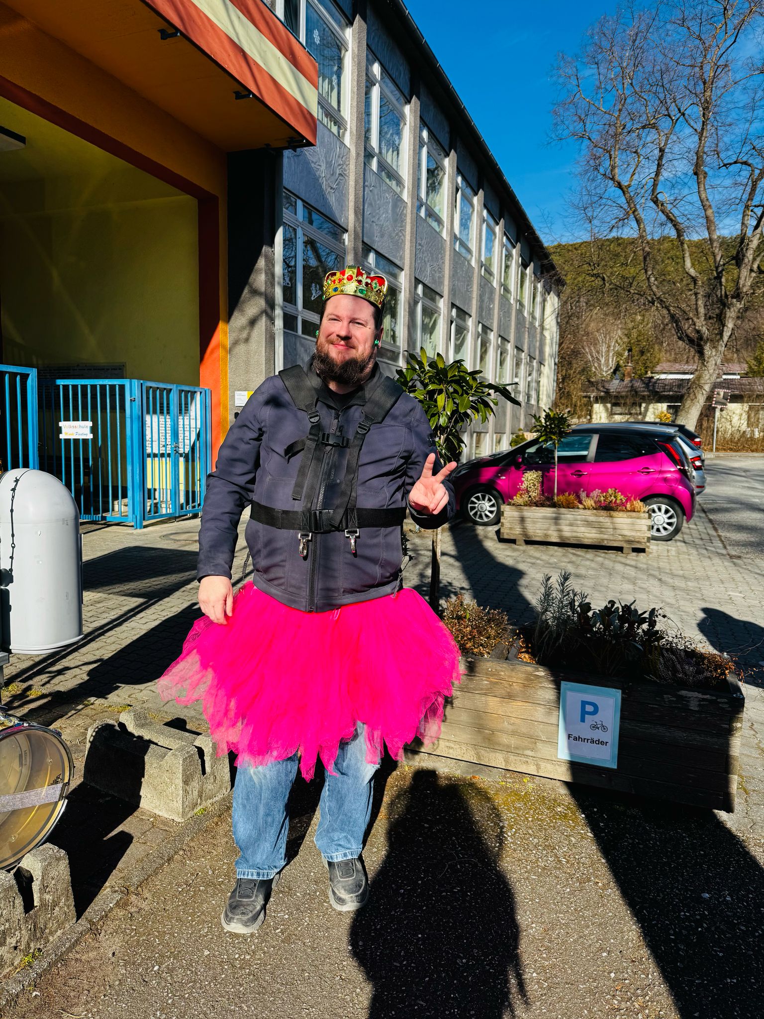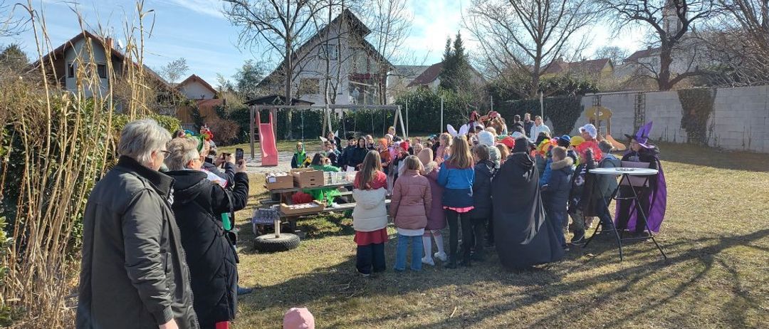 Erste Station: der Kindergarten, wo wir von den Kleinen schon erwartungsvoll begrüßt wurden. Mit im Gepäck ein passendes Faschingslied für die Kinder, das mit großem Applaus belohnt wurde. Und schon ging es weiter Richtung Rathausgarten. Mmmmh, die Krapfen, die uns dort erwarteten, haben richtig gut geschmeckt. Serviert von den Gemeindemitarbeiter:innen und Gemeinderäten. Für Pirat und den Bösen Wolf gab’s glücklicherweise auch passende flüssige Nahrung und selbst Rotkäppchen und Prinzessin haben mit angestossen 😉.